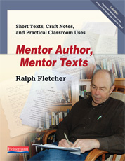 AND… the wait is over.  Ralph Fletcher’s new book is out and ready for instant use in your class’s writing workshop.  Mentor Author, Mentor Texts is right up there with all the other great texts that Fletcher has written for teachers and students (like many other folks, I’m a big fan!) Ralph has written 24 interesting texts, all short enough to be read in one sitting.  Instructions are given as to how to access these whiteboard-ready texts, even with audio clips of RF reading his pieces. But don’t rush so fast to start projecting these pieces and leading discussions with students.  Take the time to read and reflect on Ralph’s ideas on how mentor texts are being used and misused in some of today’s classrooms.  He gives us a new direction on how best to make effective use of his and other authors’ excerpts, essays, non-fiction pieces, or poems.  Rather than force-feeding our ideas or those of the author’s, Fletcher suggests we “put students in charge of what they notice.”  Let them decide what the writer is doing, whether this craft or technique would work for them in their writing, and how they might use the idea in a future piece of their own.  He cautions us to remember that young writers grow slowly.  Wouldn’t it be magical to see “students apprentice themselves to an author they can springboard off to reach new heights on their own”? One of my favorite short texts in this book is “Interview with a Coho Salmon” — very funny (and Ralph said it was a blast to write too.)  If you are using Fletcher’s new text in your classroom, please feel free to comment on how it’s going.
