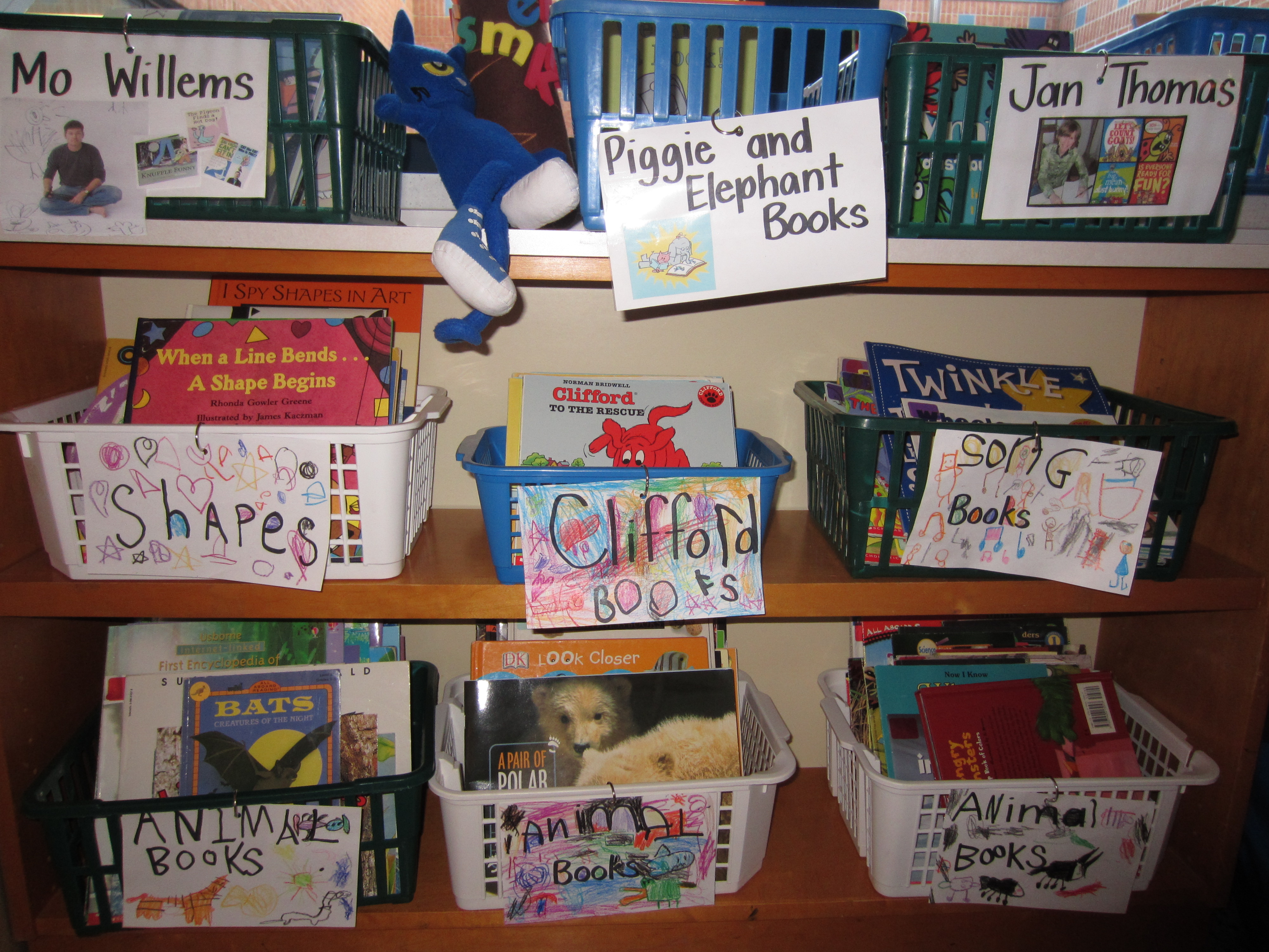 We also have a daily Writer’s Workshop, where children are engaged in independent writing. In our classroom, this is a time when we “make stuff”. Most of the time, this is books.  I model what book making is by reading lots and lots of wonderful books by authors we love. We start on day one, with 5 blank pages of paper stapled to make a book. This format evolves as a variety of book forms are discovered over the year.  During independent writing time the children are working on their own (for the most part – occasionally we have co-authored books with a friend), making books about topics of their choosing.  We read lots and lots of good books to use as our mentor texts, and learn from authors we love about making books. The children work at their own pace – sometimes taking many days to complete a book. I confer with the children as they are writing and they share their books with me and with the class. I take notes for myself as I talk with my writers, but I do not write on their books. If I need to remember what they wrote to take note on whether they are staying on one topic or have an understanding of how a particular genre works, for example, I write it down for me in my notes. I do not write on a child’s book at all. I teach each child differently, based on what they are ready for as a writer. I honor the fact that they are five, and are writing like a five year old. If a child decides to make a book and then I do the writing for him or her (either by writing under his or her writing, transcribing a word or two, or otherwise writing on the book), it is sending a strong message that I am the one who really knows how to write – not the child. It takes away ownership from the book. A child can “read” his or her book just fine – if we let them – and if we change our definition of what “reading” might look like – perhaps the book sounds different every time it is read. That’s fine. The child is the author and they can read it however they like.