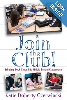 51AaZ+LkmLL._SY346_PJlook-inside-v2,TopRight,1,0_SH20_ If you are looking for something to inspire your book clubs for next year, read Join the Club: Bringing Book Clubs into Middle School Classrooms.  Like the author, Katie Doherty Czerwinski, I had read all the professional books on literature circles from years past (Harvey Daniels’ work and Moving Forward with Literature Circles from Scholastic) and helped many teachers develop book clubs in their 4-6th grade classrooms.  But there has not been much written about the topic of late.  So I was happy to read and thoroughly enjoy this new text from Choice Literacy.  Even though is says “middle school” in the title, what the author describes would be applicable for upper elementary grades also.