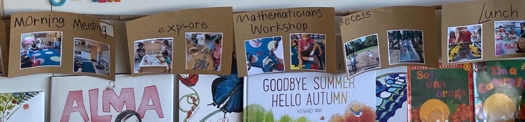- 3:20 – Closing Circle, Dismissal (end of day math routines, songs, packing up)